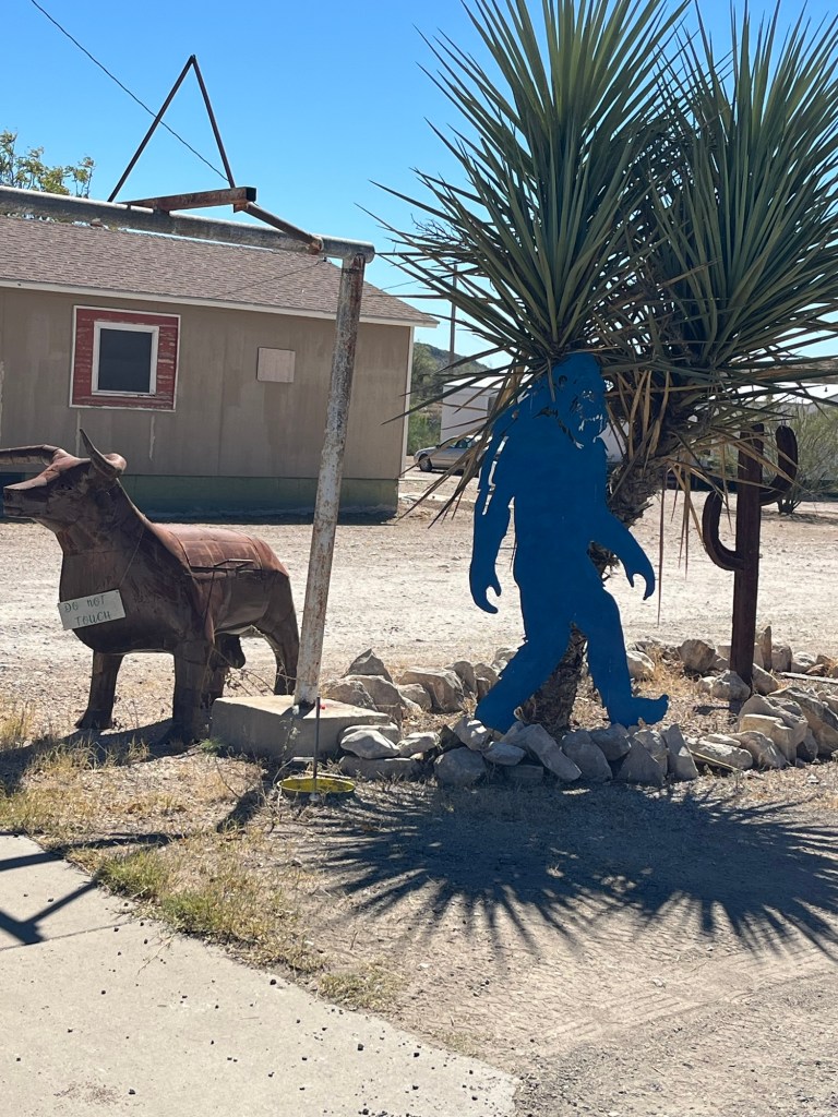 When I rolled into Sanderson around 1:00, I biked a few extra blocks to a BBQ place that was supposed to be open from 11:00-2:00, but they had already closed. I guess they sold out! So I made my way back to a cafe in an old Ford dealership building called Ferguson Motors and met Dana and Felix for a few Shiner Bock’s. Tammy and Simona showed up too.