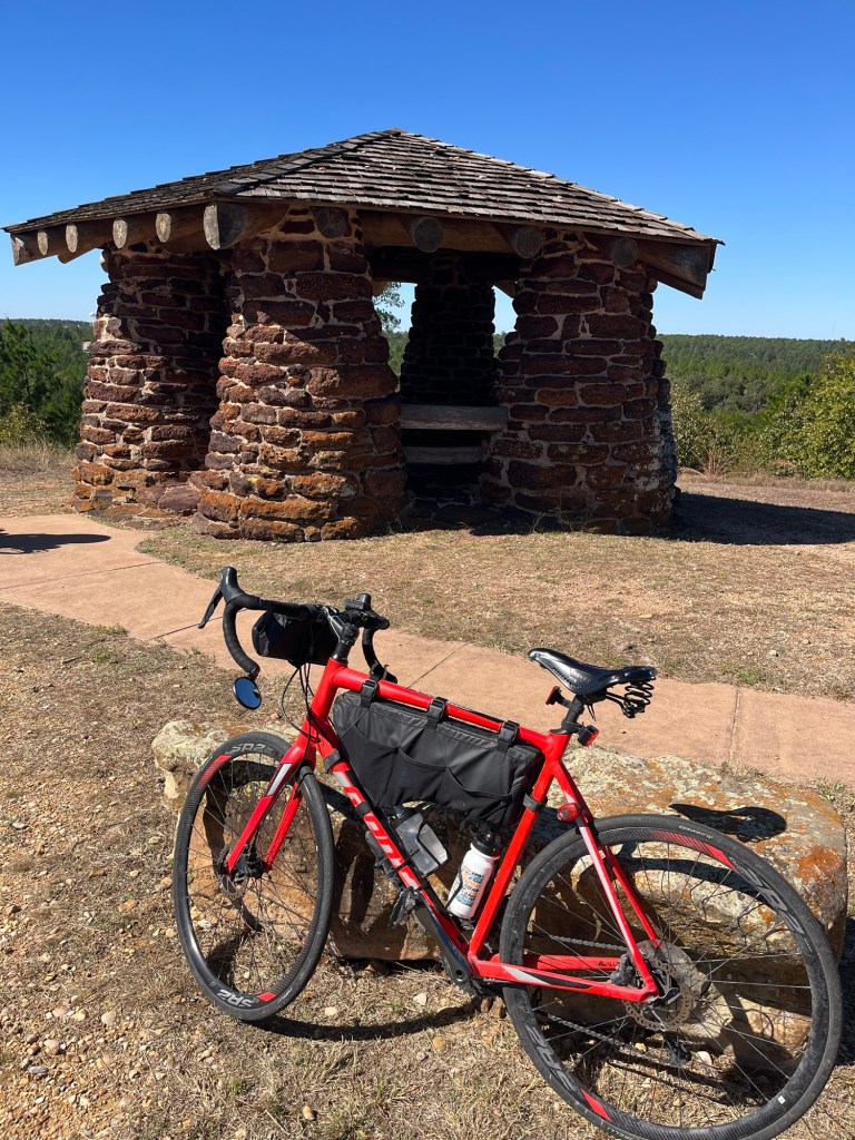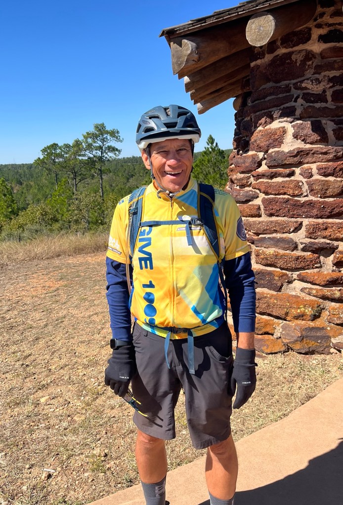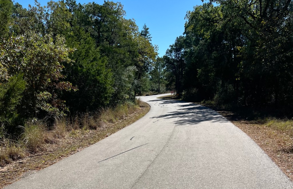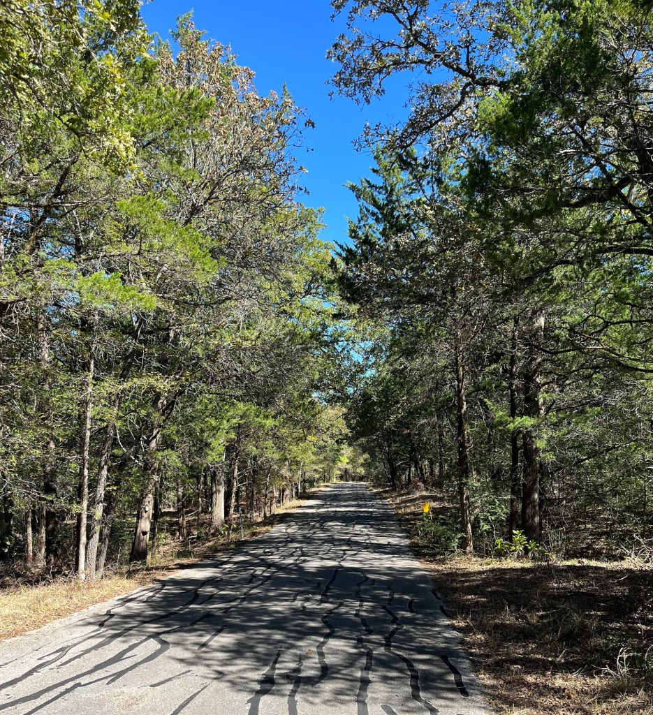 The main town along the way was Bastrop. Felix, Chris, Brent, and I stopped at a Starbucks for about 30 minutes for a nice break. After leaving Bastrop, we entered Bastrop State Park. We were on a 2-lane park road from Bastrop State Park to Buescher State Park, for about 14 miles. The park road was beautiful, well-paved, had a lot of curves and some challenging short but very steep hills (Mark’s computer said we went up a 16% incline in one spot). During that 14 miles, guess how many vehicles I saw on the park road…wait for it…Two!!! Imagine riding on a scenic fun road with no traffic for 14 miles. That was my favorite 14 mile segment of the whole trip so far.