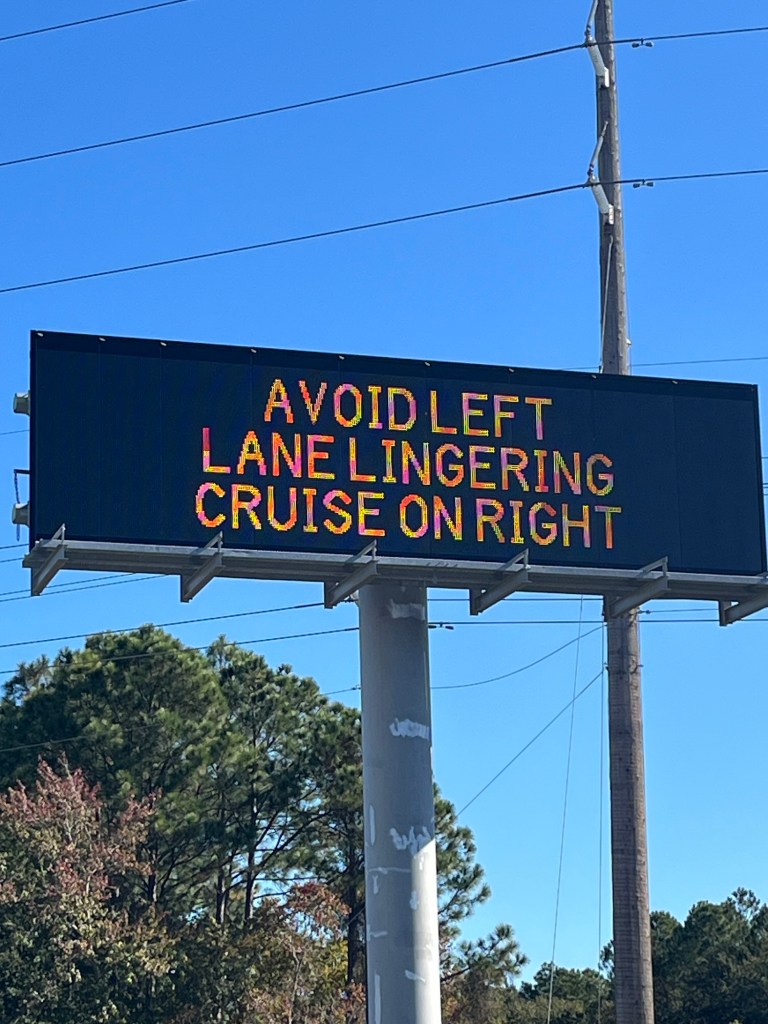 Margaret would appreciate this sign. She can’t stand people impeding the left lane.