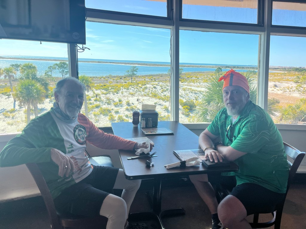 The highlight of the day was the 8 miles riding out to Dauphin Island. We crossed a lot of water and rode over a steep bridge. Once at Dauphin Island, Dana, Felix, and I went slightly off course to check out Pirates Bar and Grill. It was a good choice with great views of the island and the Gulf.