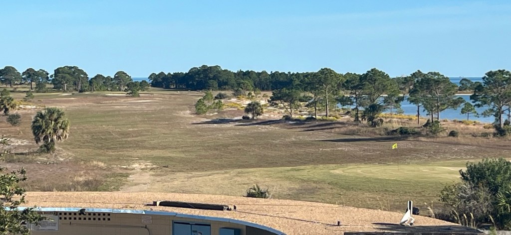 View of golf course from the bar. Dana says we could clean and place the ball!