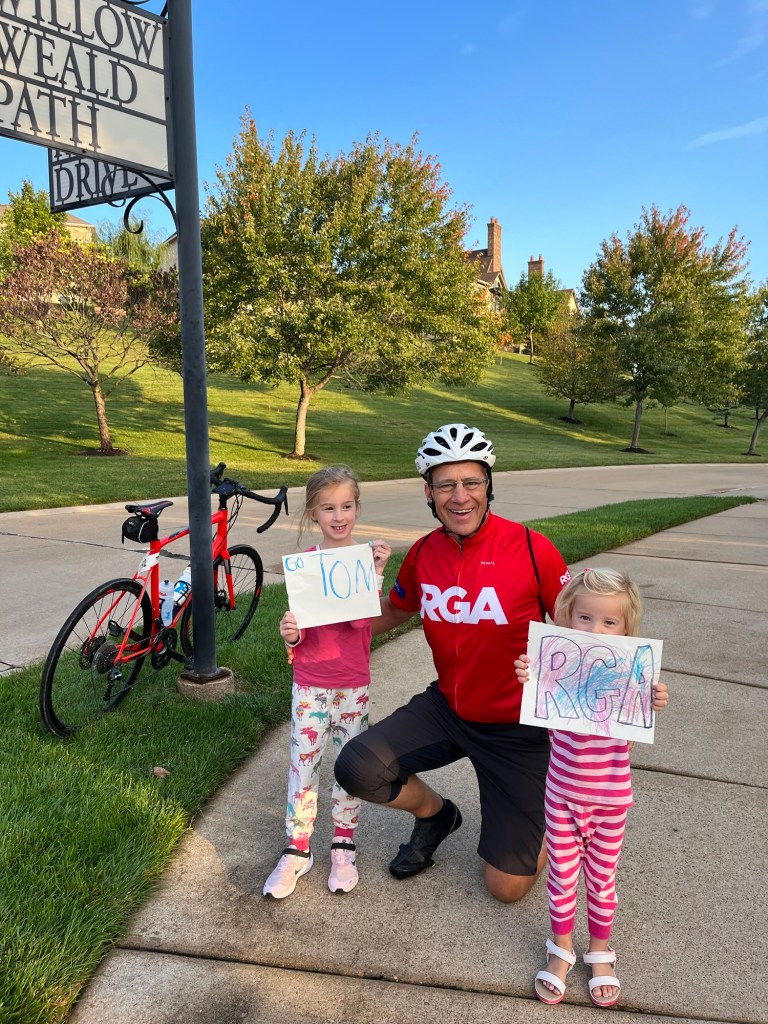 Here’s one of the many reasons I donate. My friend Hazel (on left with me and her sister Claire) had cancer when she was two. She is now doing great and cheered me on at a previous Pedal The Cause ride.